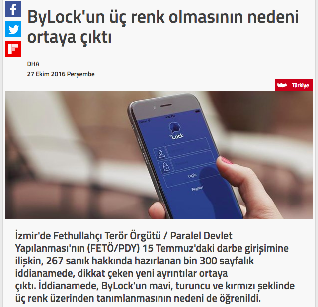 ByLock, an encrypted online messaging application, has emerged as the Turkish government’s favourite tool throughout mass arrest campaign which targeted critics of its policies. AKP officials claim that BYLOCK has exclusively been used by the members of the Gülen Movement as a secret communication tool. The government claims that anybody who might have downloaded it is in fact a “terrorist.”